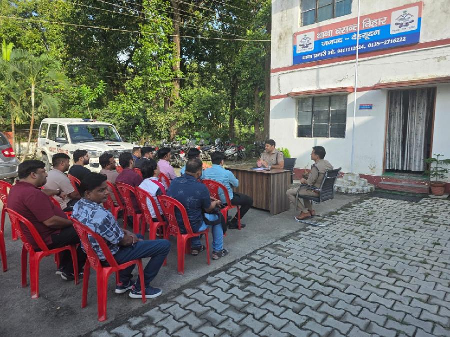 आगामी त्योहारी सीजन के दृष्टिगत वरिष्ठ पुलिस अधीक्षक देहरादून द्वारा आगामी त्योहारी सीजन के दृष्टिगत सभी अधीनस्थों को अपने-अपने क्षेत्रान्तर्गत स्थित ज्वेलरी शोरूम के प्रबंधकों/ मैनेजरों व व्यापार मडंल के पदाधिकारियों के साथ जागरूकता गोष्ठी आयोजित किये जाने हेतु निर्देशित किया गया है । जिसके अनुपालन में आज दिनाक : 07-10-25 को थानाध्यक्ष बसंत विहार द्वारा क्षेत्र में पड़ने वाले समस्त ज्वैलरी शॉप/शो रूम के मालिकों/मैनेजरो की एक गोष्ठी का आयोजन किया करते हुए सुरक्षा उपायों के सम्बंध में जागरूक किया गया।