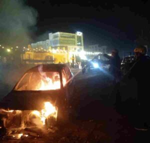 चलती कार बनी आग का गोला, दमकलकर्मियों ने आग पर पाया काबू